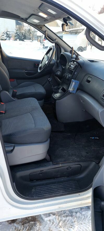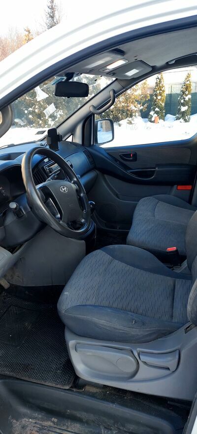 Sprzedam samochód dostawczy Hyundai H1 z 2011 roku, furgon z silnikiem Diesla o pojemności 2497 cm³ i mocy 136 KM, przebieg zaledwie 165 tkm. W listopadzie 2025 r. zakupione zostały do auta nowe opony całoroczne Yokohama. Przy ostatnim serwisie w czerwcu 2025 r. przy przebiegu 160 tkm poza olejem w silniku i filtrami wymienione zostały przednie tarcze hamulcowe z klockami. W październiku 2024 r. został zakupiony nowy akumulator (jeszcze na gwarancji). Auto sprowadziłem osobiście ze Szwajcarii w 2021 r. z niewielkim uszkodzeniem prawych przednich drzwi z przebiegiem 120 tkm (ostatnie 4 zdjęcia z aukcji w Szwajcarii).Hyundai H1 z 3 miejscami siedzącymi i 5 drzwiami. Dopuszczalna masa całkowita pojazdu wynosi 3160 kg, ładowność to 987 kg. Uciąg na haku 2300 kg. Pojemność przestrzeni ładunkowej to trochę ponad 5 m³.